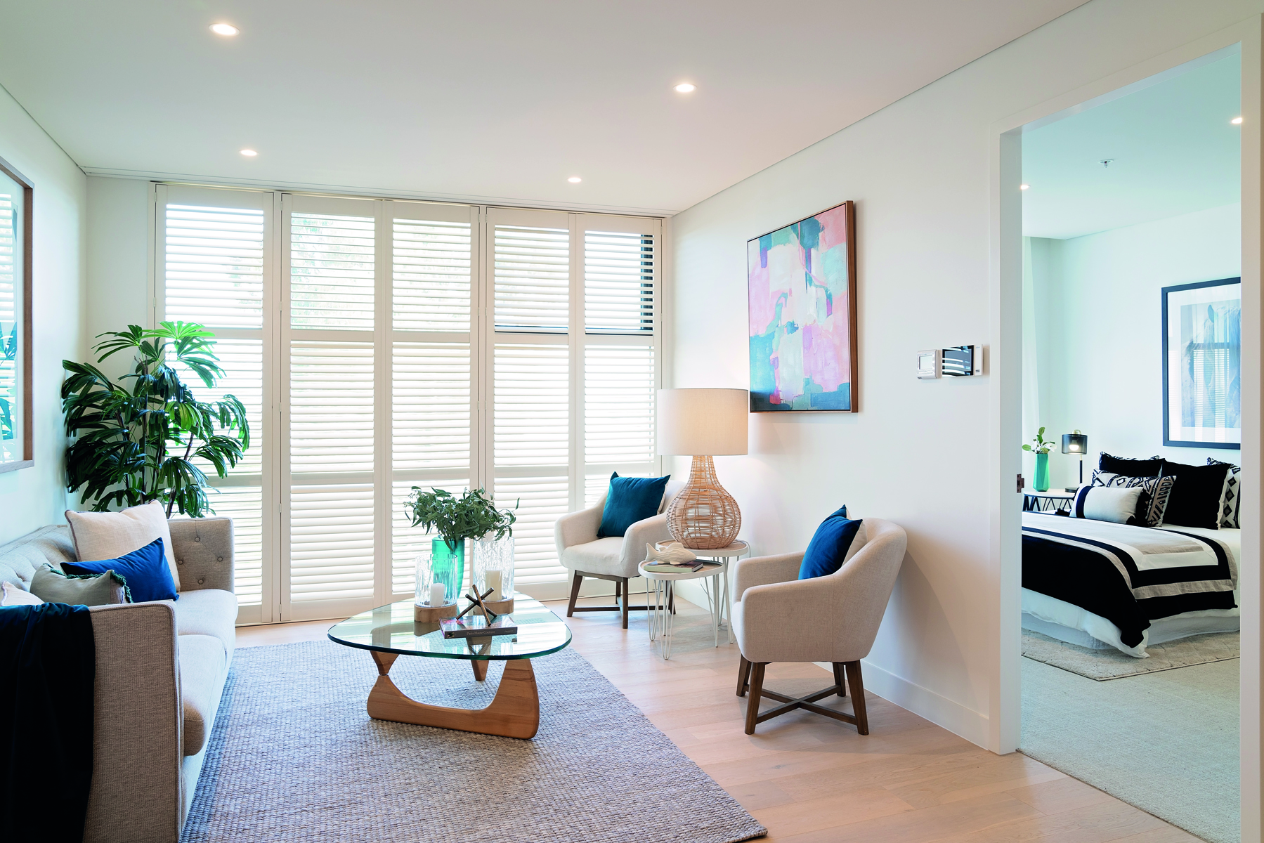 Beyond your living space is a luxuriously appointed bathroom, a walk-in robe in the main bedroom suite, as well as other handy storage spaces. There is also a European style laundry with an efficient combination washer/dryer included. There are also access points for high speed broadband and digital and subscription TV services.